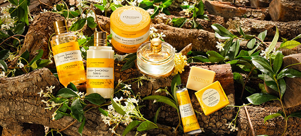 (Re)Descubra os aromas Jasmim-Immortelle-Néroli e Toranja-Ruibarbo, uma colaboração L'OCCITANE x Pierre Hermé.
